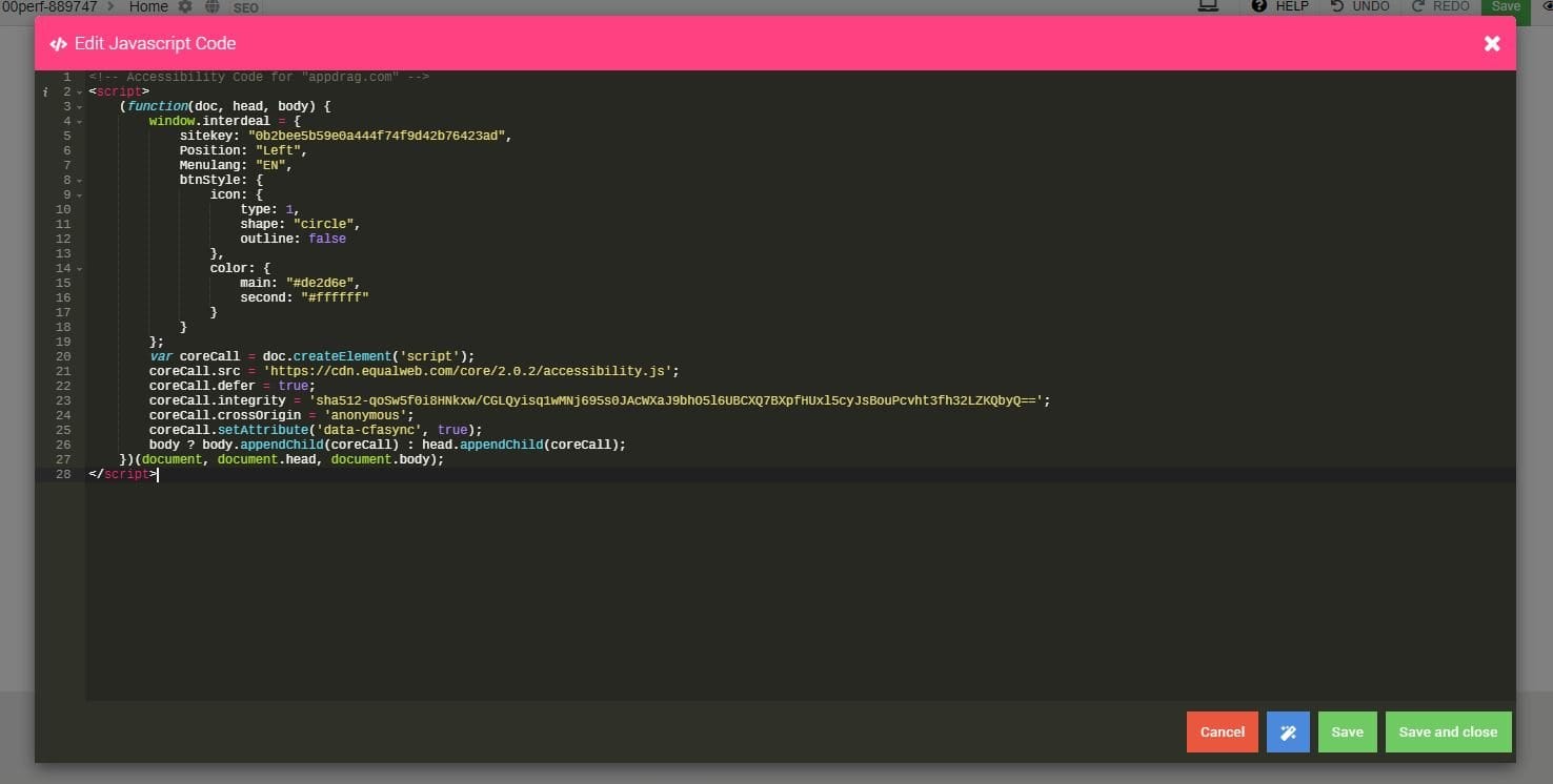 From here you should drag&drop the Javascript source code element on your page, you should drop it in the footer area of your site, this way it will be replicated on all pages of your website!