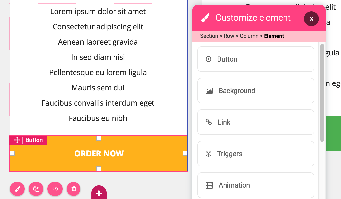 2 - Double click on the element or button you want to trigger a Paypal Action and click on Triggers